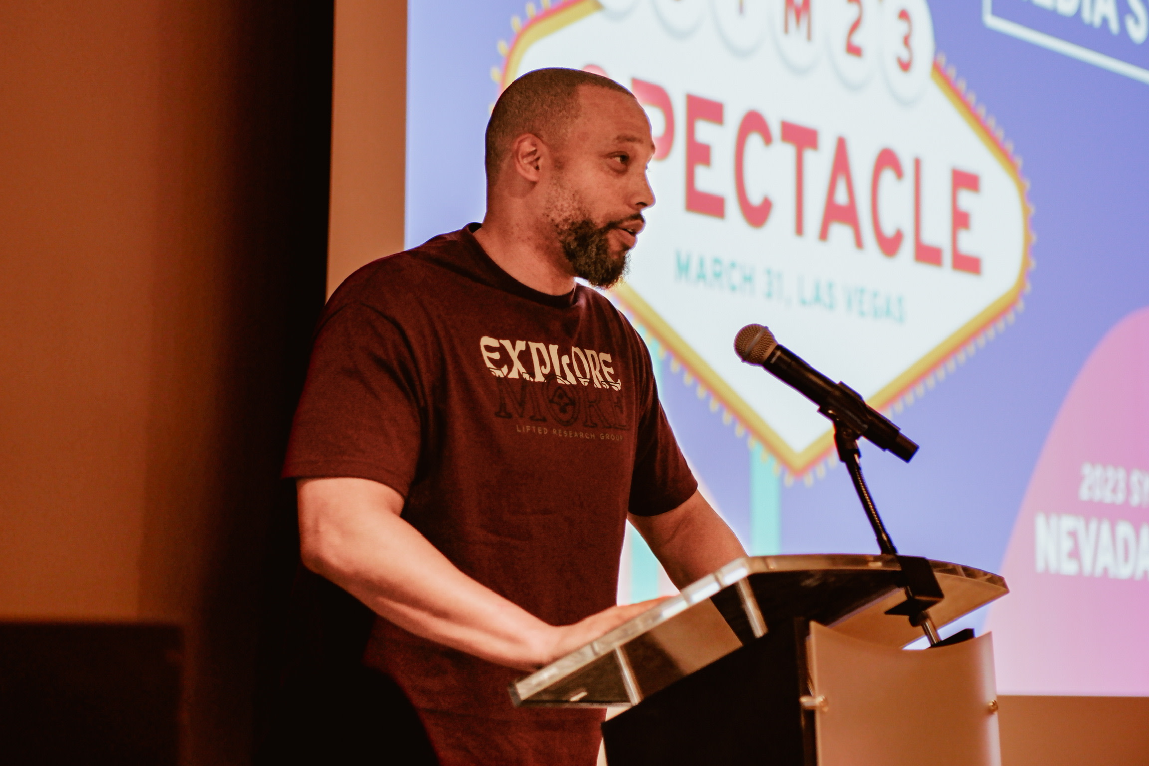 The 2023 Social Justice + Media Symposium interrogated the concept of Spectacle, in the digital environments that drive our daily information routines, and in the physical environments of Las Vegas, where spectacle exists all around us. The symposium explored the ideas of visibility and invisibility, of inequity and power, and of agency and voice, in the context of spectacle culture and its impact on civic and democratic futures.